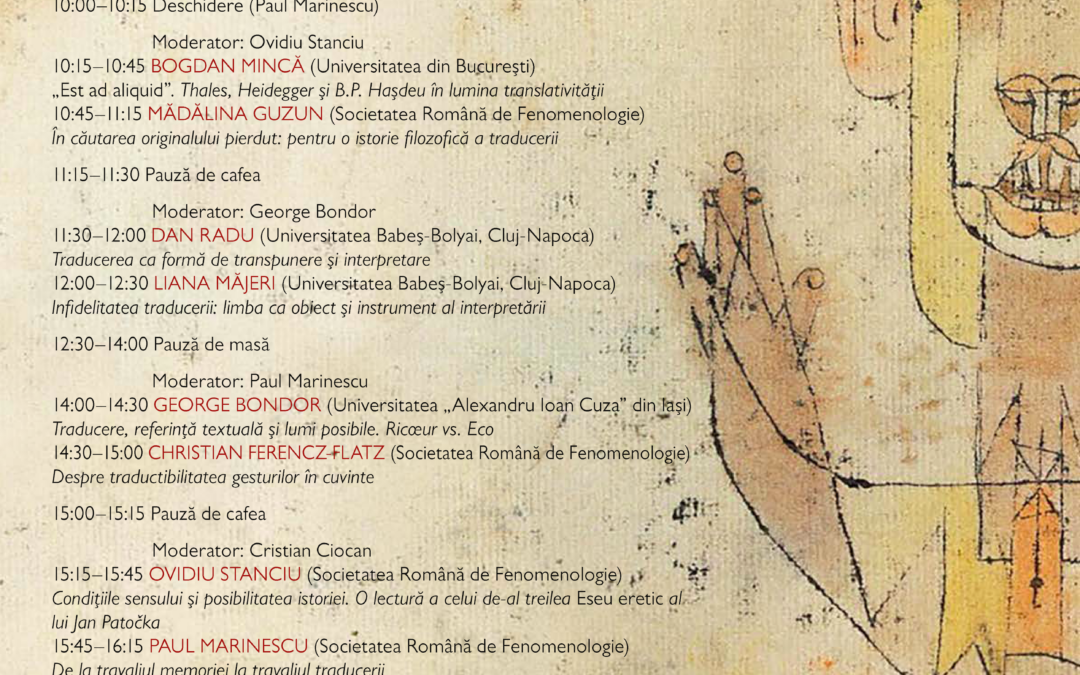 Istorie, sens si traducere. Program Afis. 20 februarie 2020